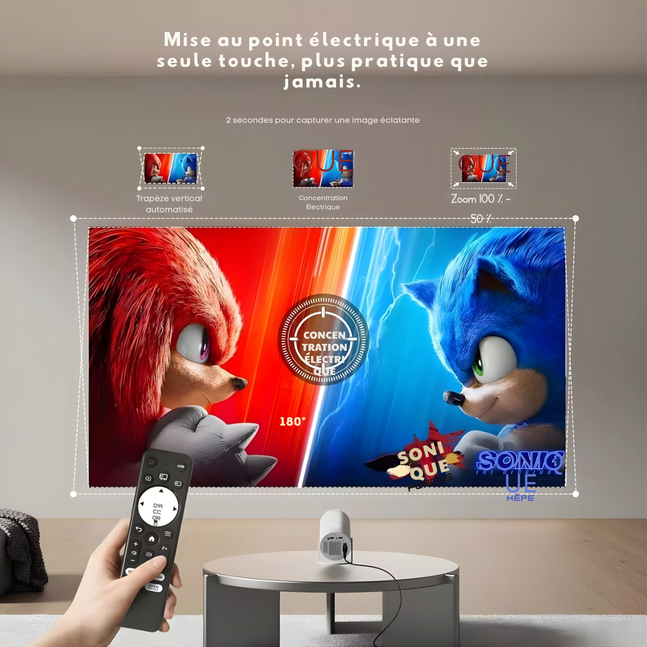 💡 Projetez sur n’importe quelle surface — télévision, mur, toile ou même plafond.